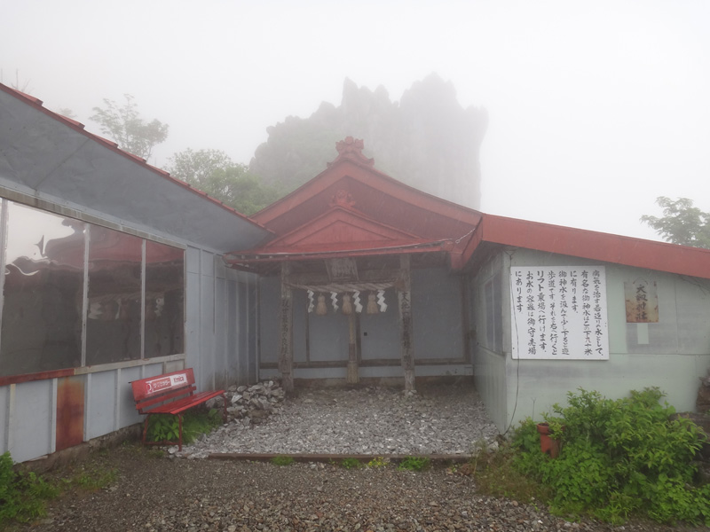登りは、大剣神社経由の道で登っていこう。 大剣神社に到着し、巨大な岩を見るために、下まで降りていくが、真っ白な景色で全然見えず……