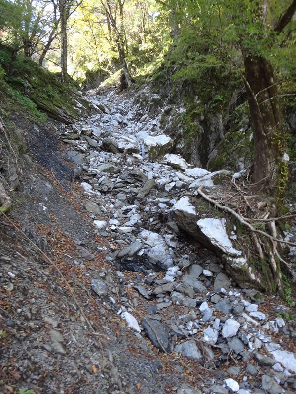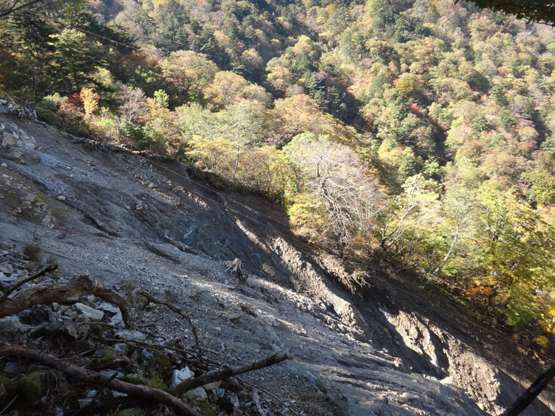 歩いていると、目の前が一気に開ける。 これが崩落地点か? と思ったけど、ここは2年前に崩落した場所ではなかった。