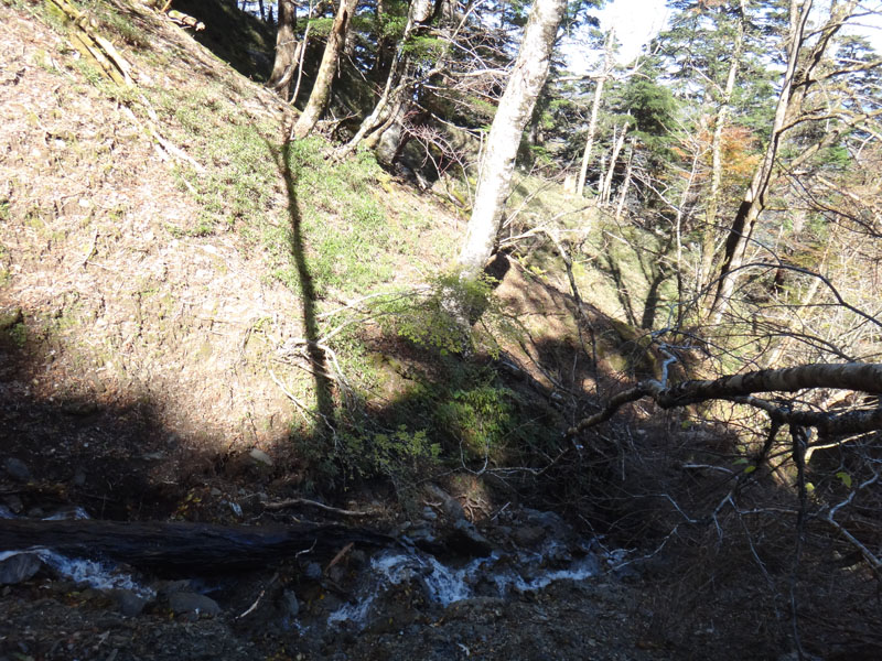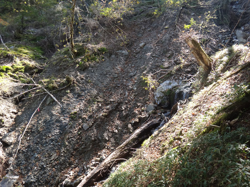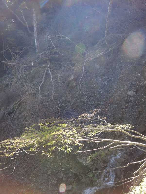 穴吹川源流手前、穴吹川源流直前、お花畑方面分岐の手前も、小規模だけどがけ崩れが起きていた。