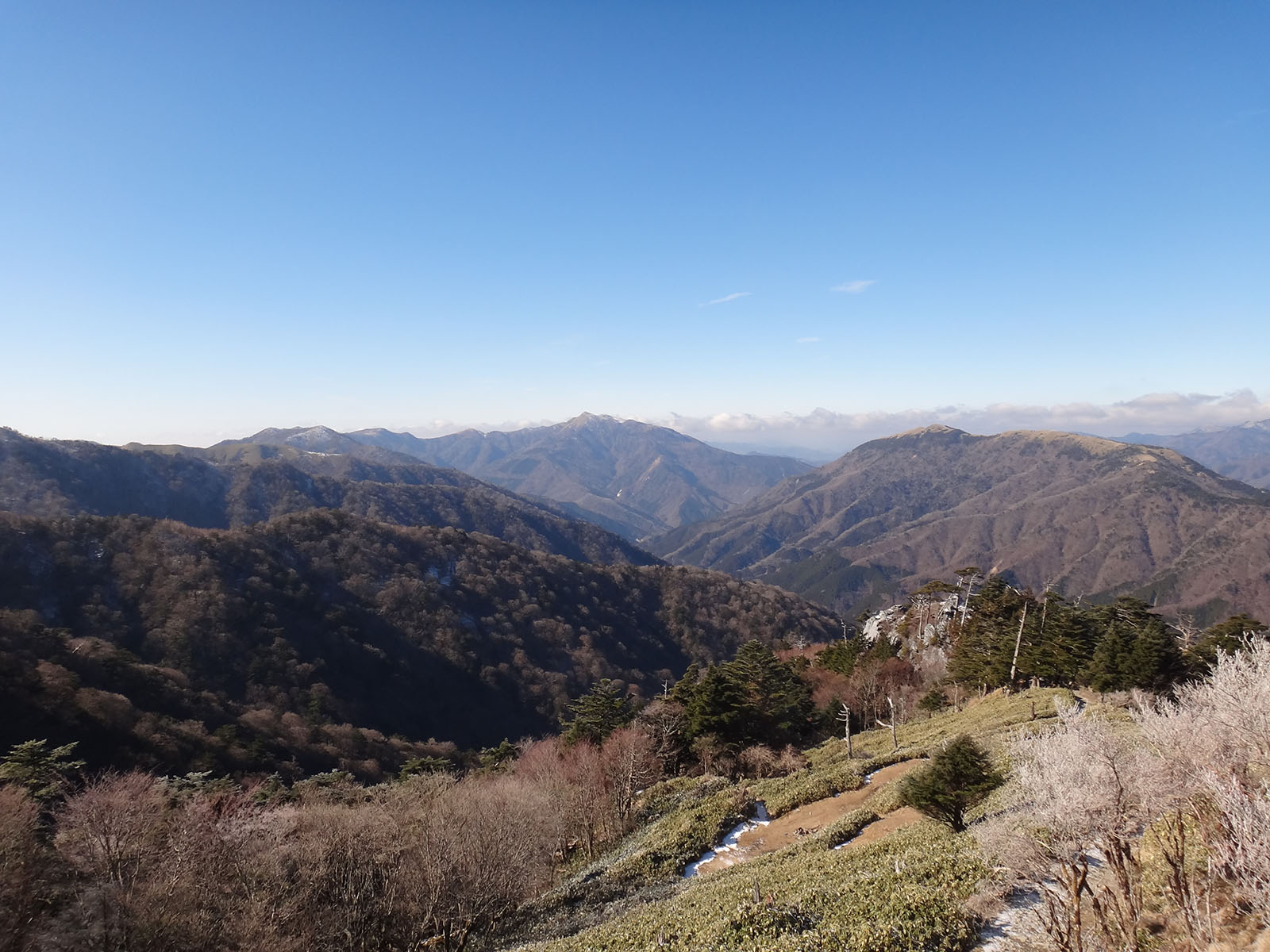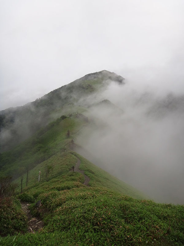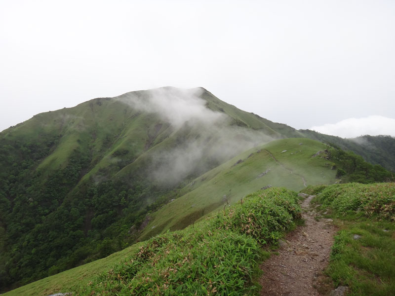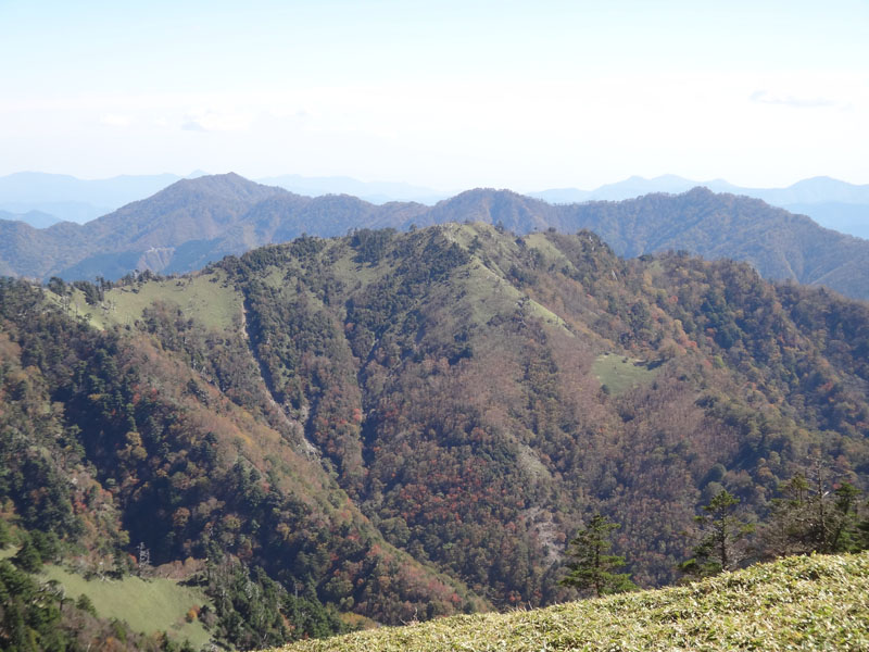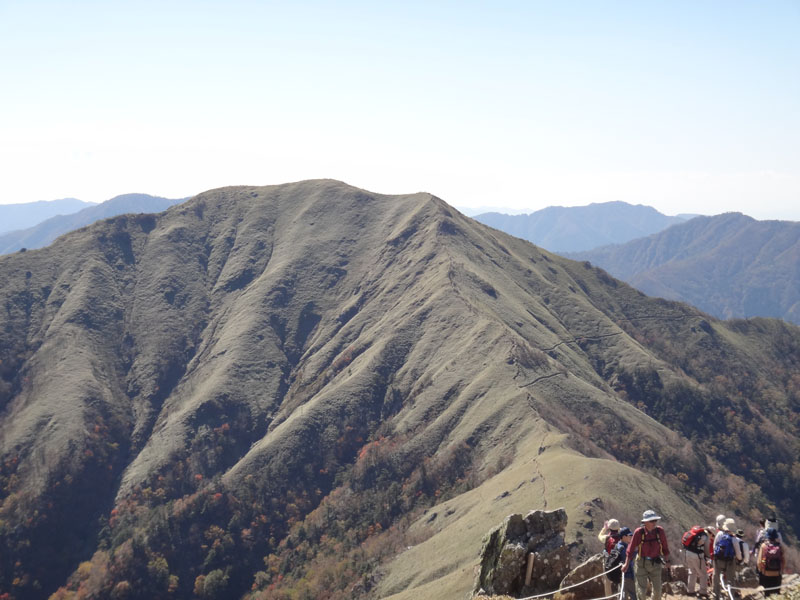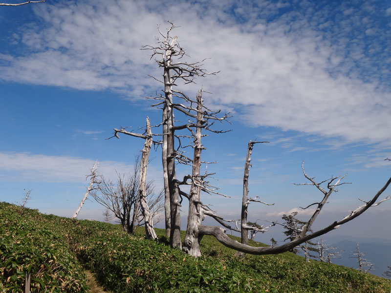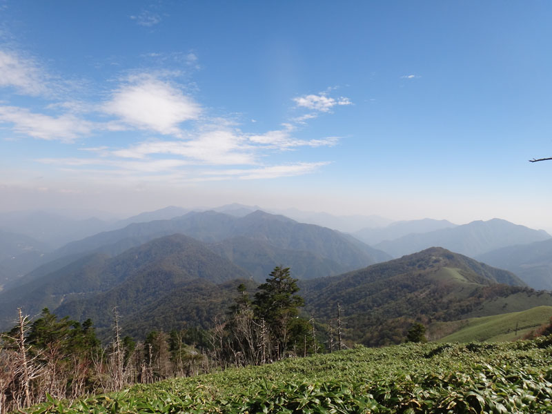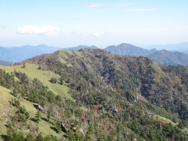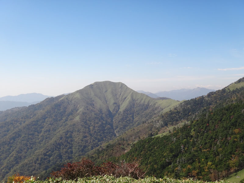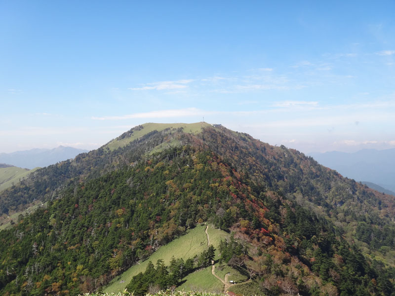 さて、剣山に登って帰ろうかな。 剣山までは一旦140mほど下ってから、160mほど登る。 次郎笈と剣山はほぼ標高が同じなのに、こうやって歩くと、剣山の方がだいぶ標高が高いように感じる。