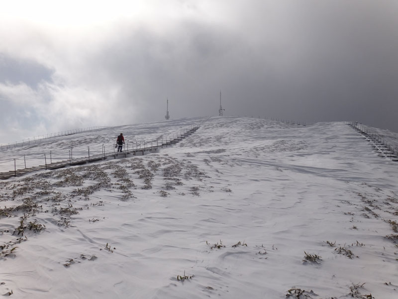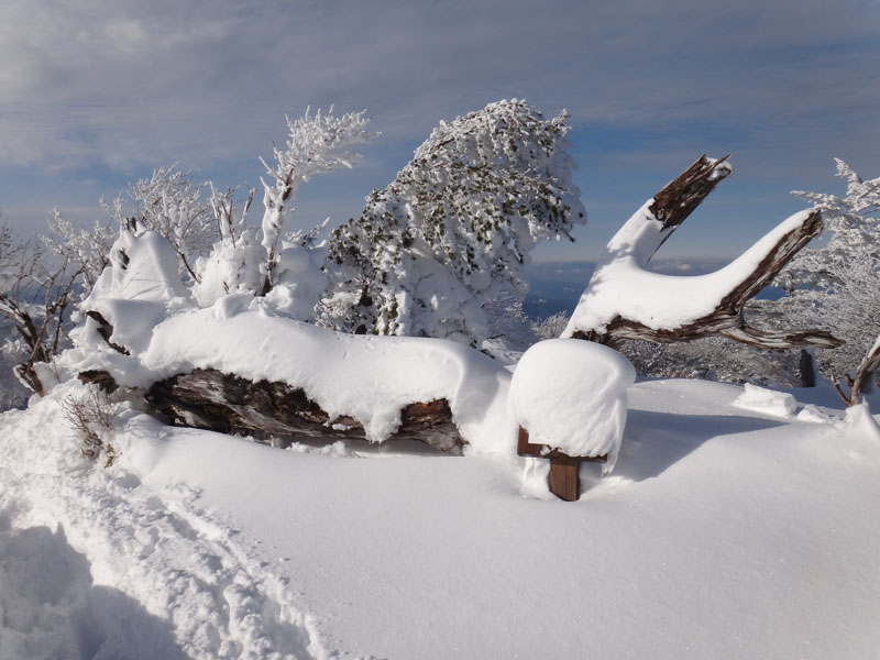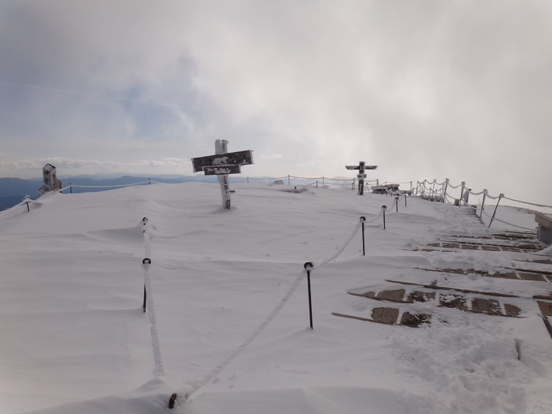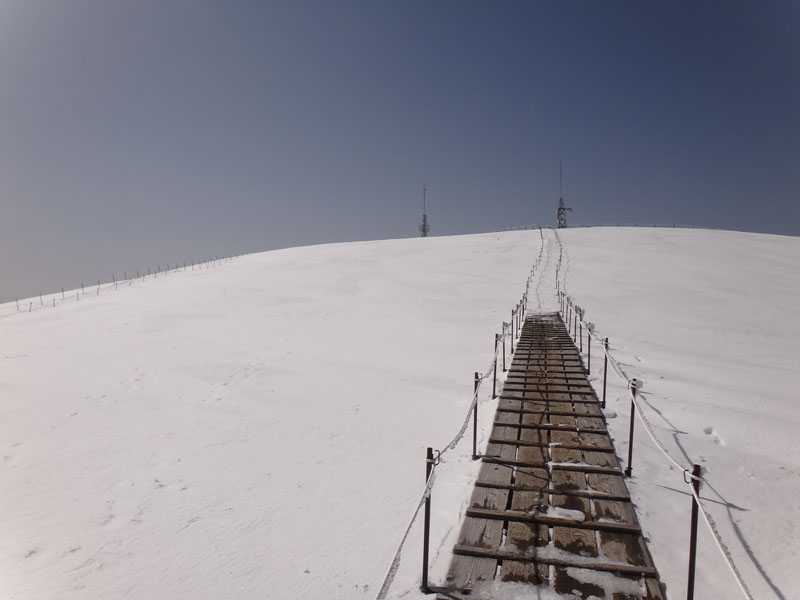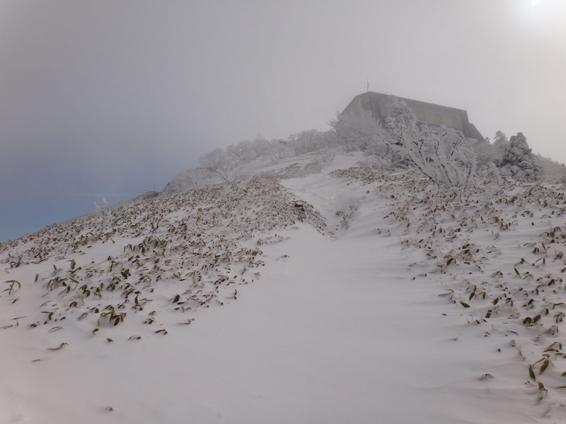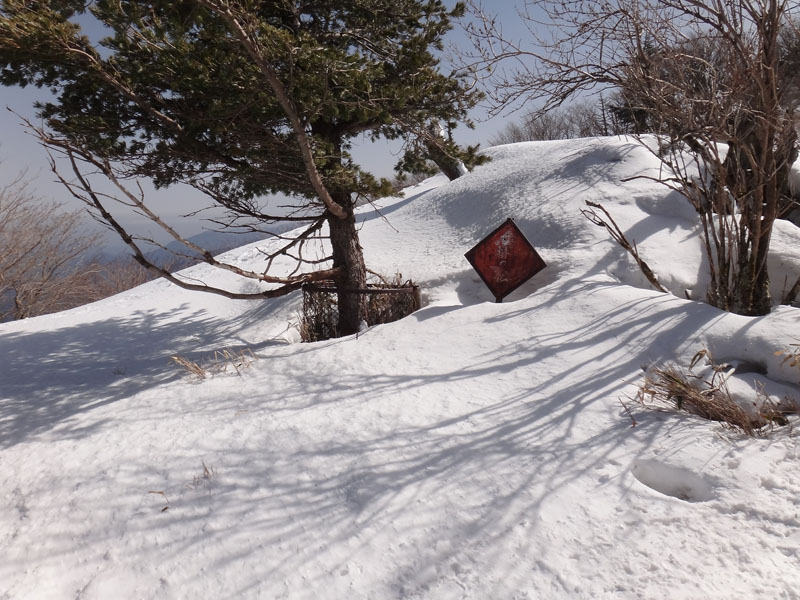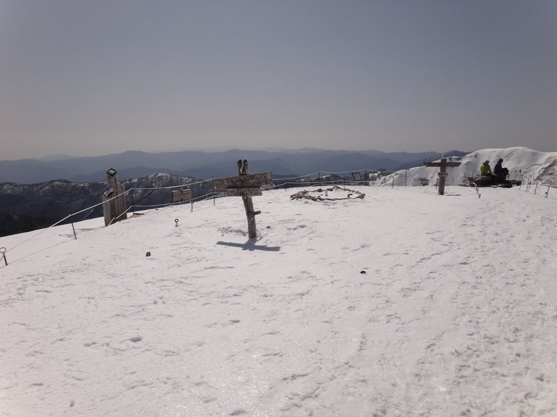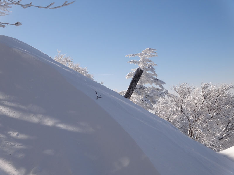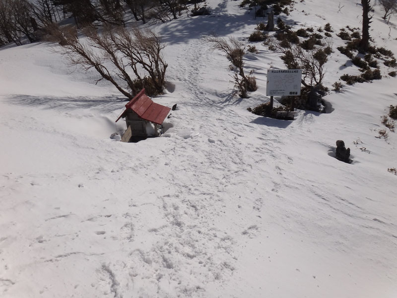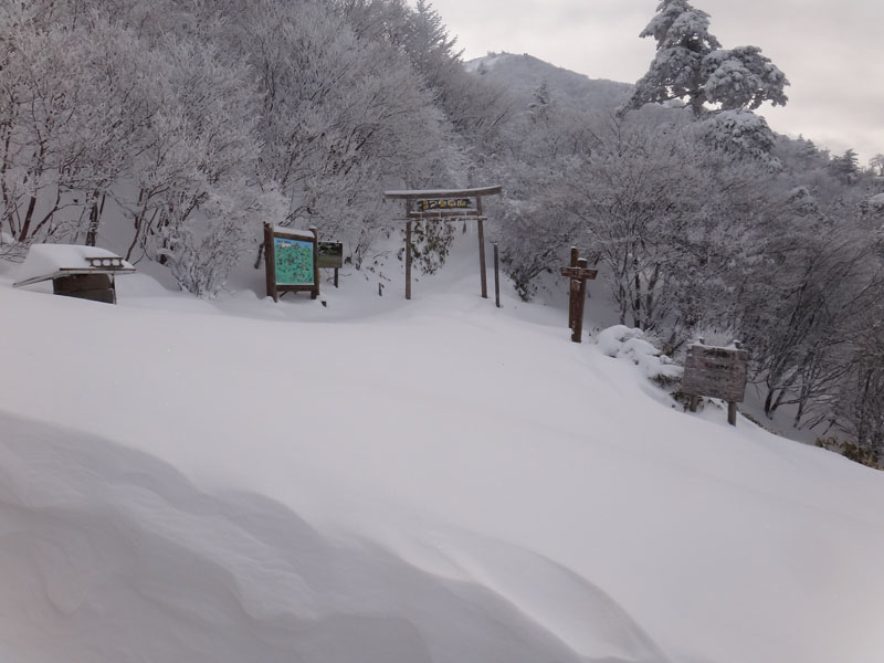 そして山頂広場に到着。 この大剣神社から山頂広場の区間も1時間以上かかっている…… やはりラッセルはきついな…… 夏場なら20分、25分の計45分くらいで歩ける区間。 そこに65分、70分の、2時間15分もかかった……