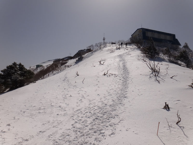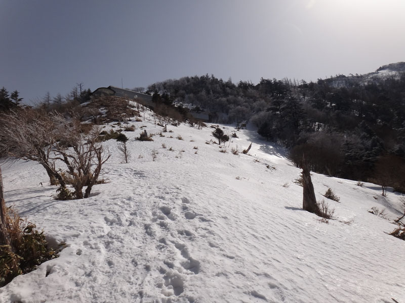 まずは西島まで。 ほとんど雪のない登山道を歩いて行く。 早くも前から降りてくる女性がいたり、途中で休んでいる男性がいたり、後ろから歩いてきたけど、同じくらいのペースなので抜かされなかった男性がいたり。