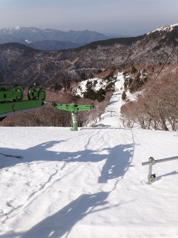 帰りは刀掛けの松経由で西島まで降りて、西島からは最短ルートではなく、野営場のすぐ先を左折して600mくらい距離が伸びるけど、ほとんど人の来ない道で降りてきた。 リフトの下をくぐる所で正規のルートに合流するのだけど、こちらは5組くらいしか人が通らなかったので、非常に静かで良かった。 そして下山。