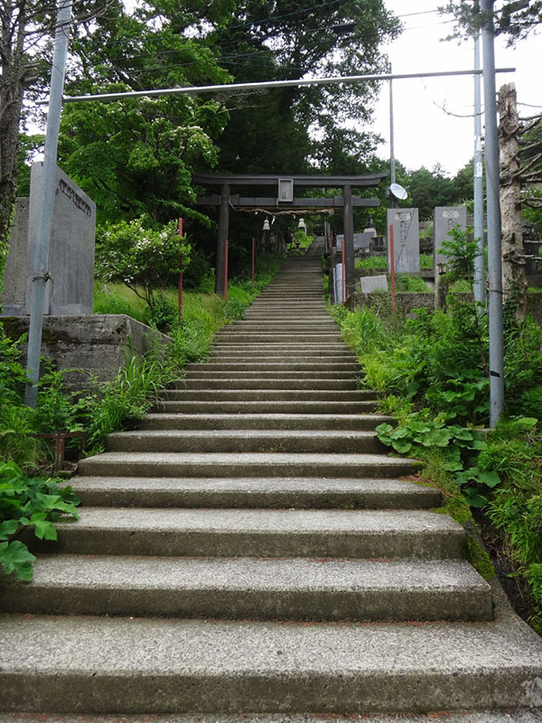 準備をして9時位から登山開始。 リフトを使わず徒歩で登るので、まずは西島まで。 久々すぎて全然道を覚えていない。 出だしの神社の敷地内は小石が敷き詰められていたのだけど、ここは以前土だったような気もするがはっきりと覚えていない。 出だしは標高1,400mくらいなので、平地より気温が10度近く低いはずで、多分25度くらい? 温度だけ聞くと暑く感じるが、実際にもそれほど涼しくはなく、日なたは暑かった。 最初は樹林帯なので直射日光は避けられるが、西島直前は日差しが遮られていないので暑い!