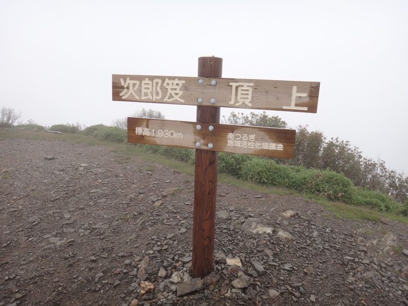 景色は全然見えず、次郎笈も一ノ森も見えなかった…… 風が強かったので、すぐに山小屋まで戻ってきて、小屋前でお昼ご飯。
