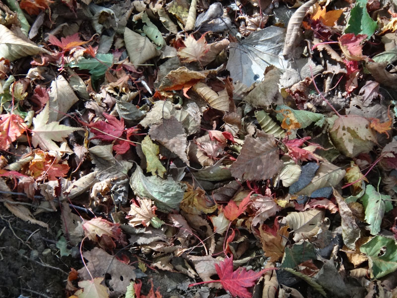 追分までの道もだいたい覚えているので落ち葉を楽しみながら登っていく、すぐに追分まで到着。 追分でも水分補給して、一気に一ノ森ヒュッテまで上がる。