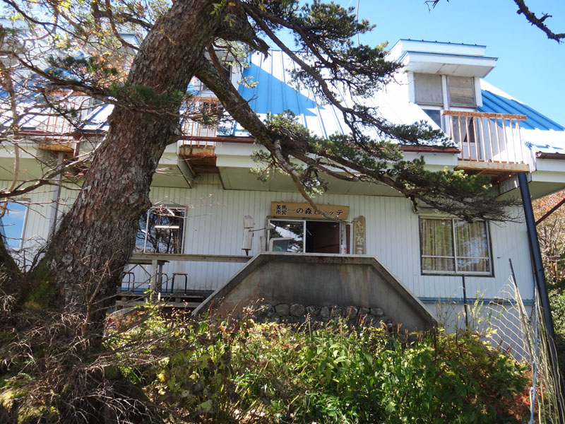 お花畑方面に歩いて行く。 お花畑は、もうお花畑といえるようなものじゃなく、雑草、枯葉、朽ちたネットや支柱などでボロボロの状態だった。 ここも廃れるな…… 時期はわからないけど、キレンゲショウマという花が有名らしいけど、それを見に来る人もだいぶ少ないだろう、通行止めの道だし……