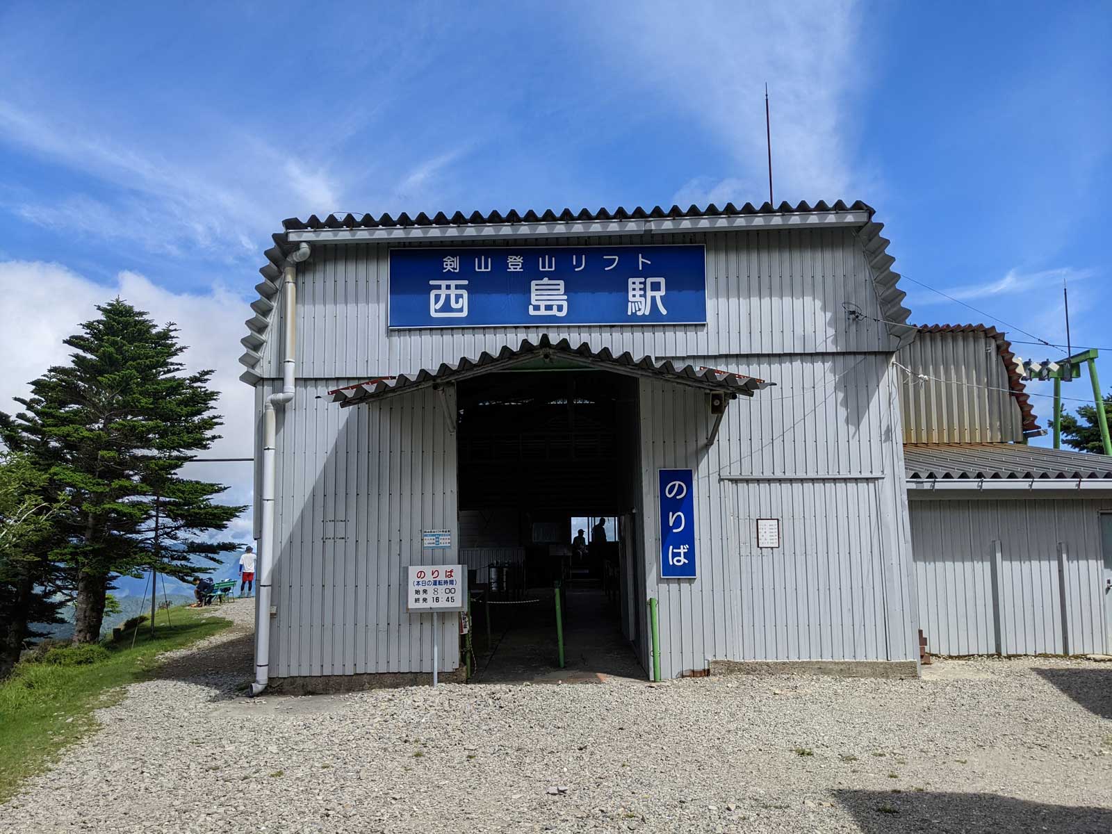 8時35分くらいに登山口の見ノ越に到着したが、リフトの所の第一駐車場は満車。 登山口に近い方の第二駐車場も1Fは満車で屋上に案内された。 山の日なのでガードマンが出ている。 到着してから10分も経たないうちに第二駐車場も満車になり、これ以降の人たちは、徒歩20分くらいかかる第三駐車場に案内されていた。 ここに止められて良かった。 混雑するとは思っていたが、この時間で駐車場がいっぱいになるとは思っていなかった。