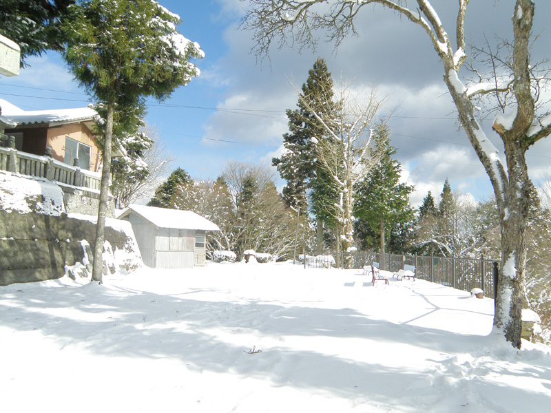 山頂には神社があり、キャンプ場もある。 ここまで車でも来ることができる。 雪がなかったら……