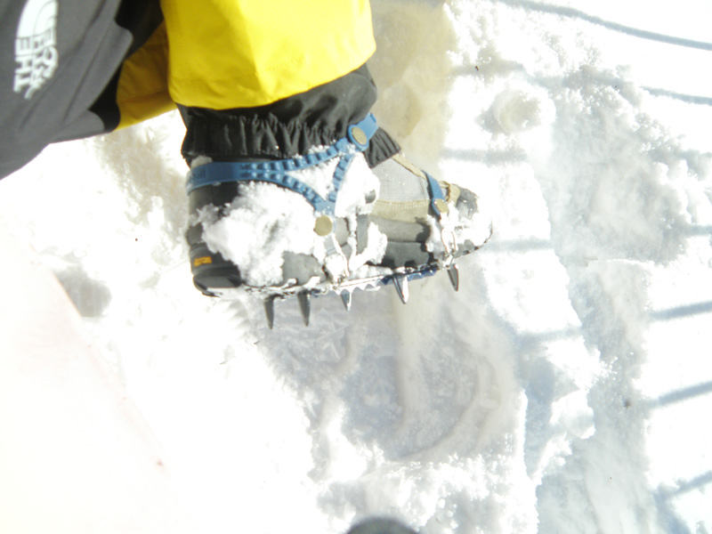 わざと踏み固められてツルツルすべる場所とか歩いたけど、やっぱりアイゼンがあると心強いね。 一切の不安なく歩くことができる。