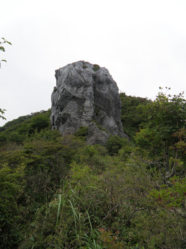 そして突然目の前に巨大な岩が出現した。 ここから一気に傾斜が急になる。 じわじわと登って行き、ついに三嶺山頂に到着。 ここまで実に7時間かかっている。