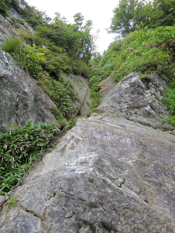木々が全く見えなくなった辺りから、登りが急になる。 鎖も見えてきた。