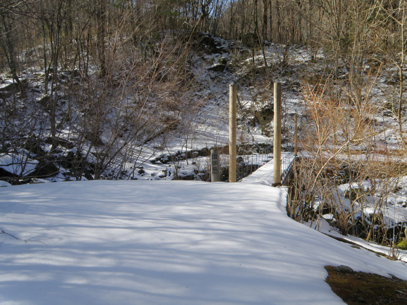 しばらく歩き、国体橋に到着。 この近辺だと、平均的に雪が積もっている。 少し休憩して出発。 ここからがけっこうキツイ道。