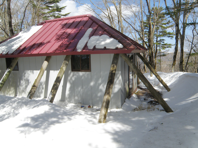 樹林帯の中を歩き、丸石避難小屋まで到着。 思ったより疲労が蓄積してるので、小屋の中で休むことに。 うっかり横になると、眠ってしまいそう……