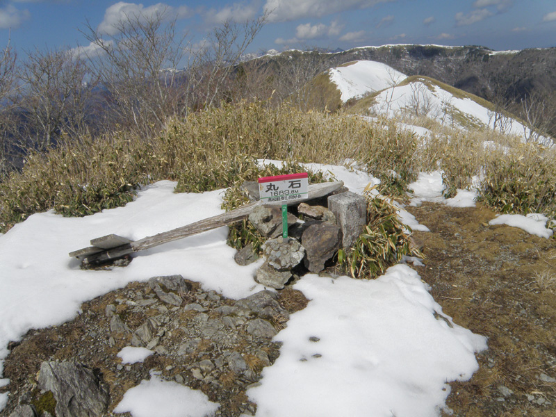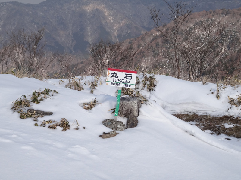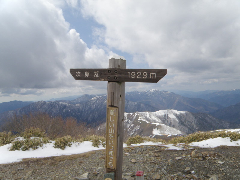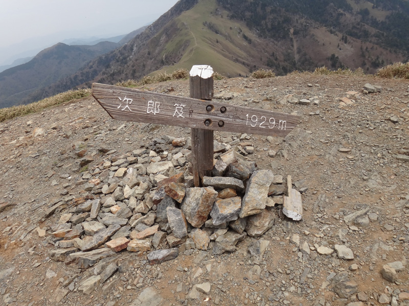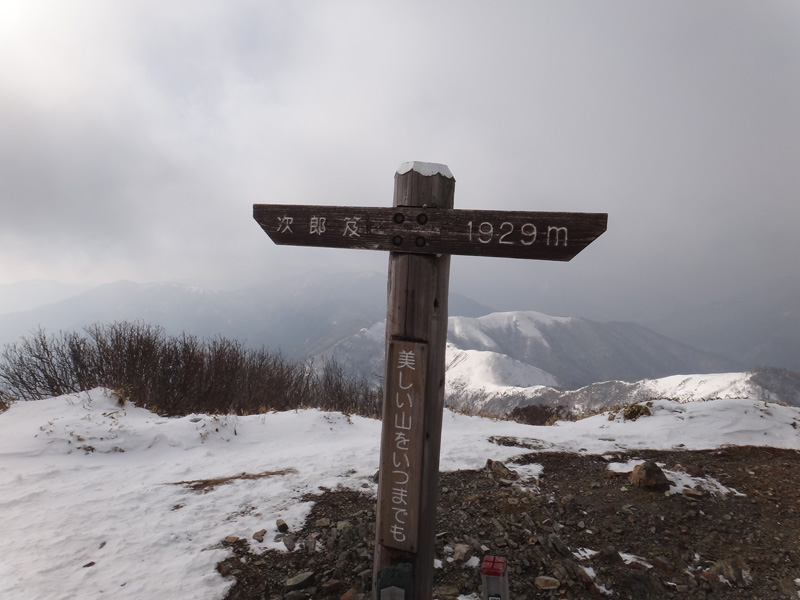 苦労しながら次郎笈山頂に到着。 誰もいない。 思ったほど風は強くなかった。