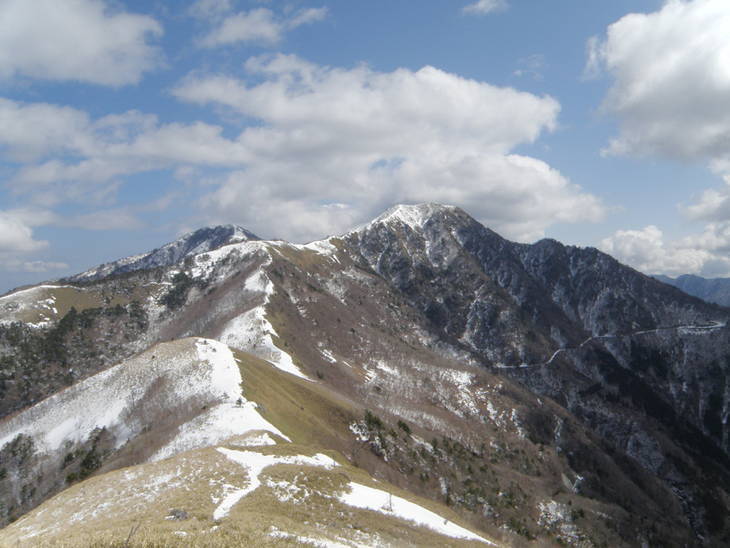 スーパー林道分岐まで到着。 ここからは最後の登り。 そして、この登りが一番きつい。 標高差300mほど。 剣山方面へのトラヴァース分岐を越えてから400mくらいのはずなのだが、そこがさらに急傾斜。 頑張るか……