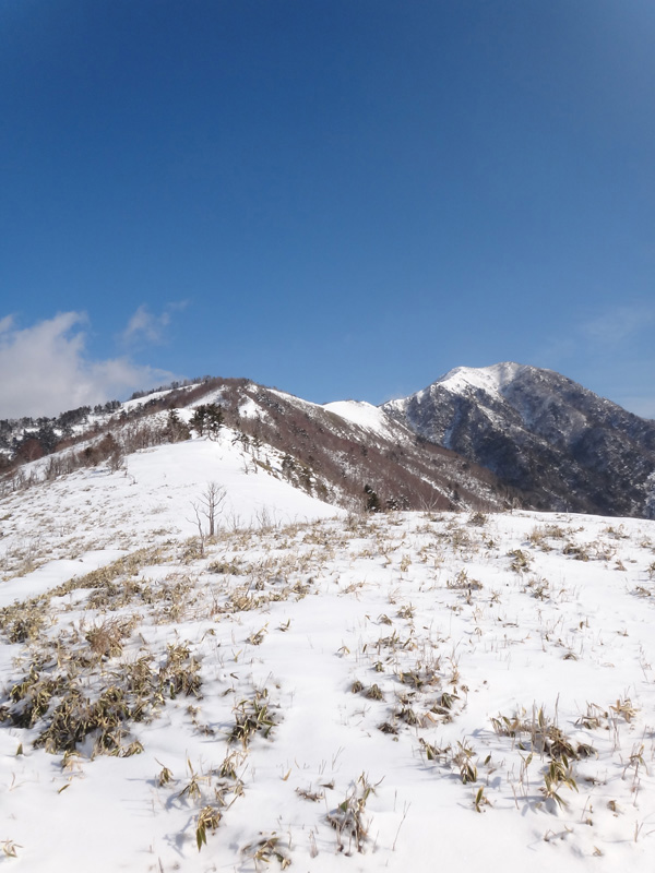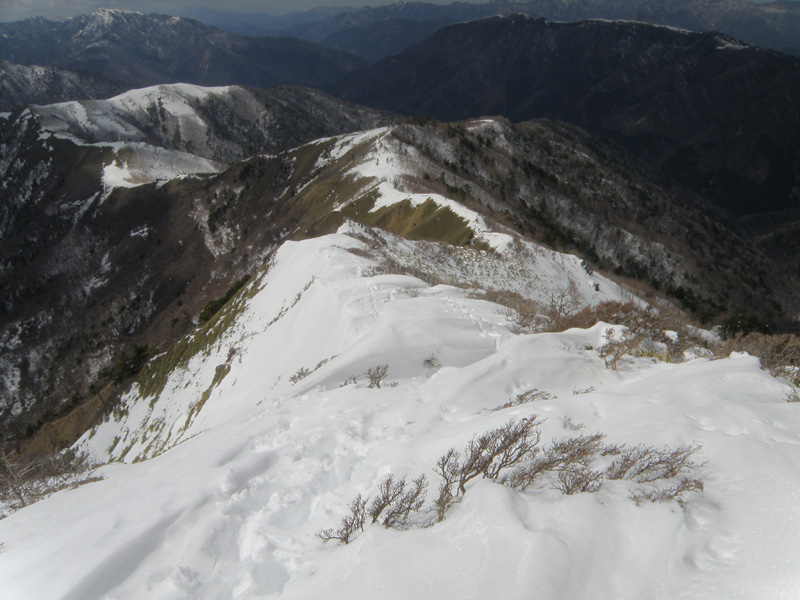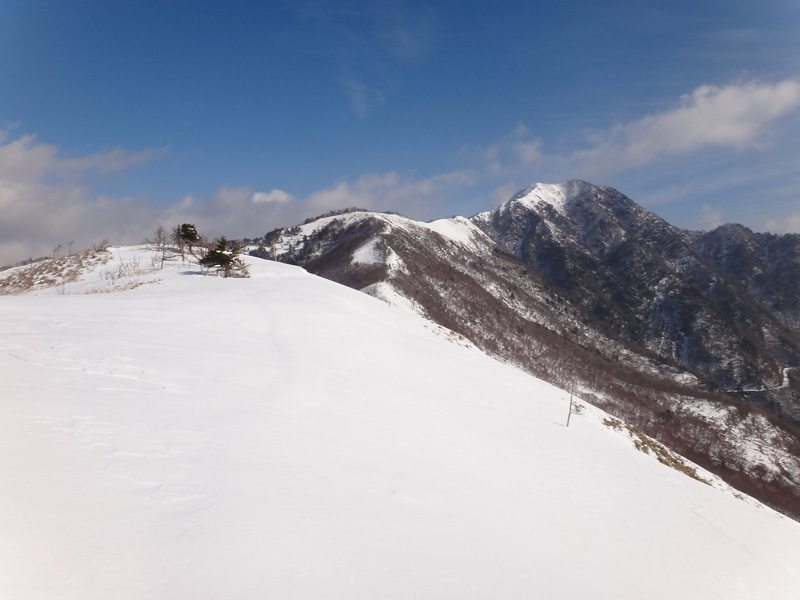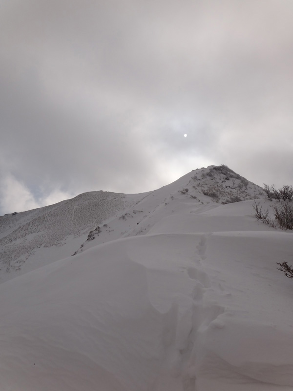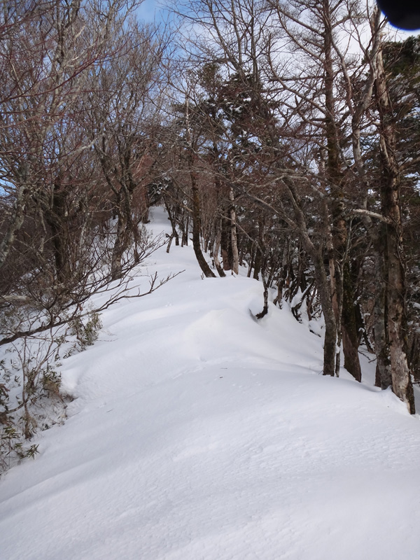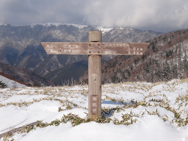トラヴァースルートも本来、冬場じゃ歩けないのだけど、今日は全く問題が無い。 西側から次郎笈に登る。 こちら側から次郎笈に登るの久しぶりな気がするな。 毎年冬に登っていた丸石~剣山の縦走も2年くらいやってない気がする。 となると、こちらから登るチャンスがあまりない。