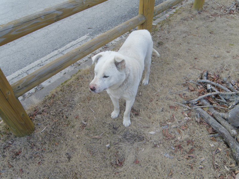 名頃駐車場には名物犬のシロかチビ、という名前の犬がいた。 残っていたおにぎりとパンを与えてしまったけど、よかったのだろうか?