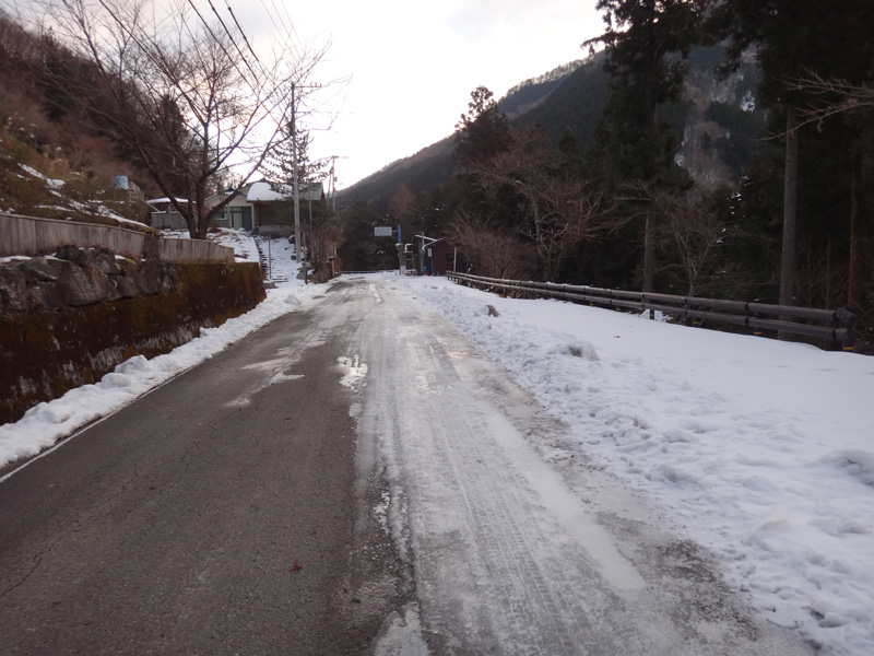 まずは、剣山スーパー林道の分岐点まで下り。 下りも雪が積もっているのだが、薄くて抜ける所もあり、なんどか頭蓋骨に刺激が走る。