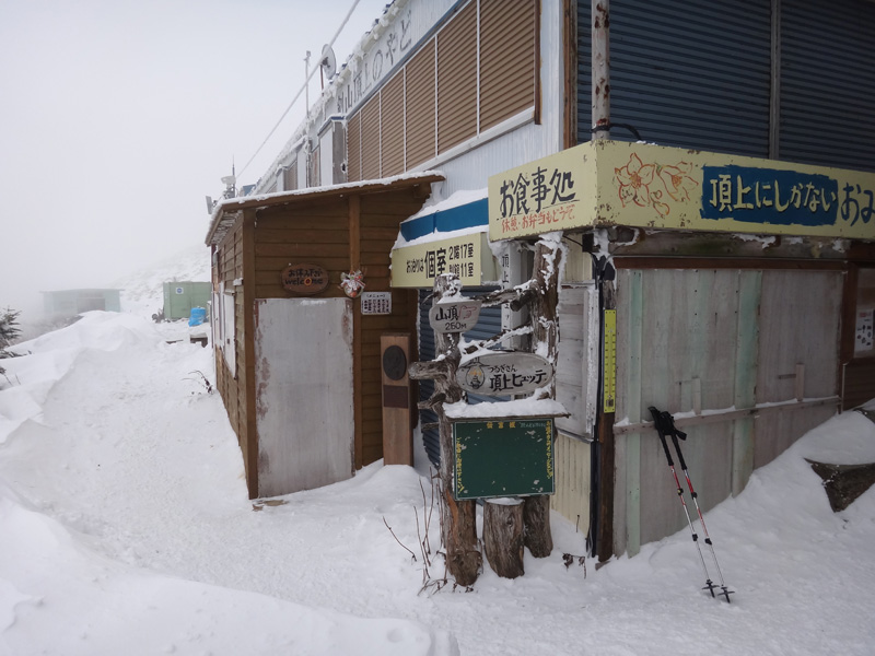 この時間になると、剣山山頂には誰もおらず…… トイレに行きたかったので、トイレに行って下山する。 山頂に新設されたトイレは冬季は閉鎖で、代わりに山小屋前にあったトイレが冬場は使えるようになっていた。