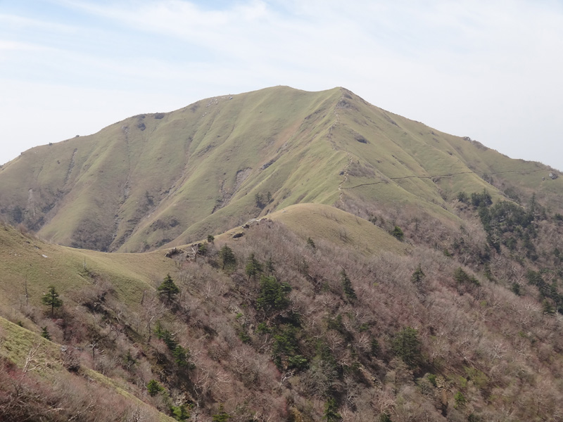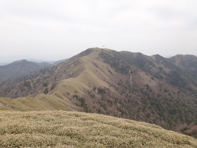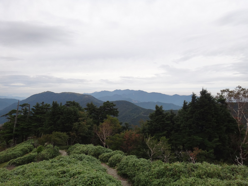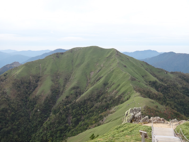 さて、剣山に登って帰ろうかな。 剣山までは一旦140mほど下ってから、160mほど登る。 次郎笈と剣山はほぼ標高が同じなのに、こうやって歩くと、剣山の方がだいぶ標高が高いように感じる。