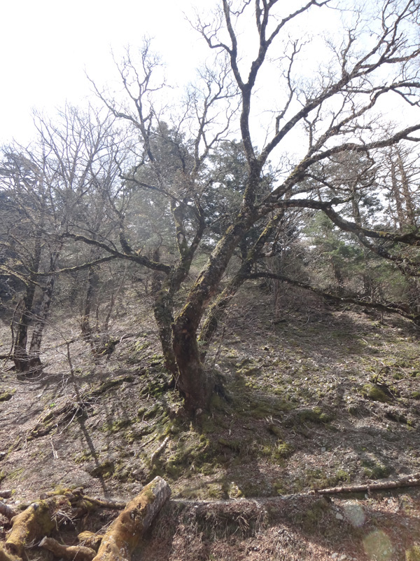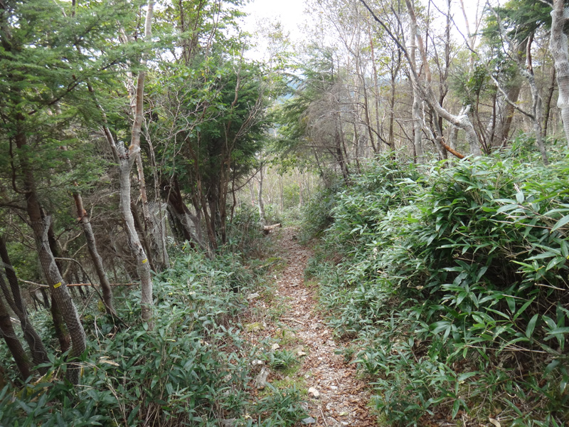 休憩が終わり見ノ越に向かって歩いて行く。 テン場の下では、道がふた手に別れるのだけど、600mくらい距離が伸びるけれど、遠回りの道から歩いて行こう。 こちらの道は、過去に1度しか歩いたことが無かったと思う。