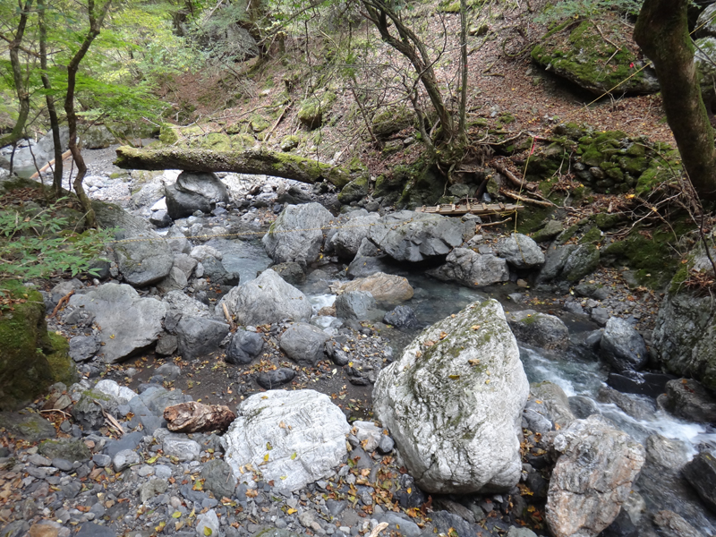 丸石避難小屋を出発してからは、ずっと下り。 あっという間に国体橋までやってきた。