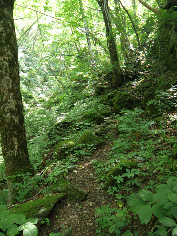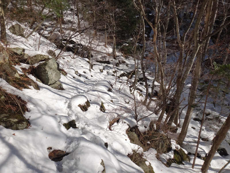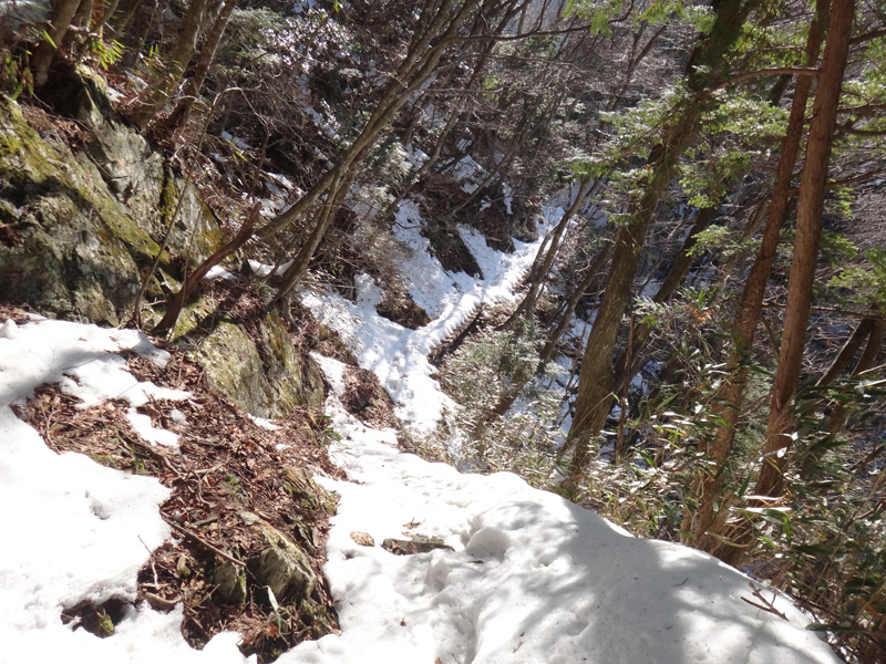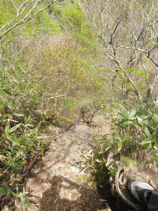 ここから先はさらに傾斜がきつくなったように感じる。 今は下りなのでいいが、登りだったら、名古瀬ルートよりもきついかもしれない。