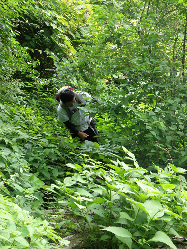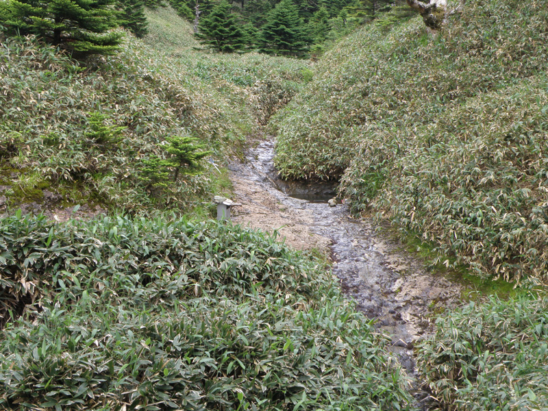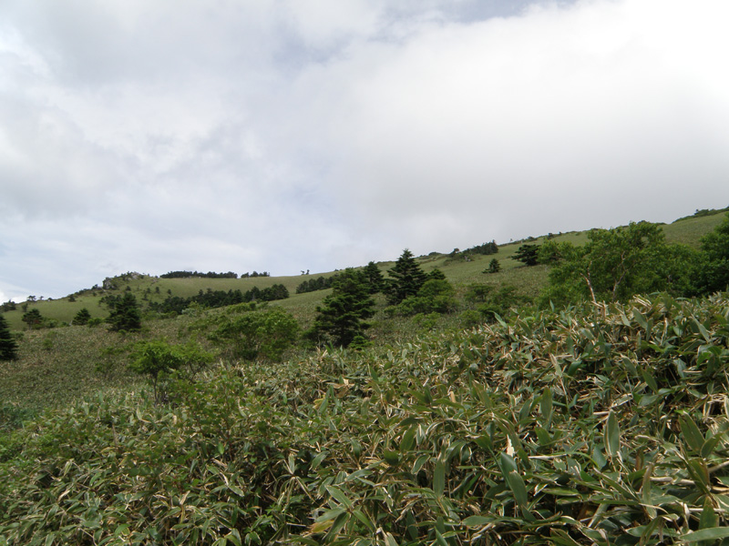 そしてようやくこの急登が終わった。 いやーつらかったな。 ここから瓶壷まで5分ほど、笹の道を歩いて到着。