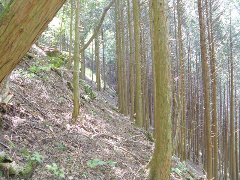 そこから先はけっこうな急傾斜になった。 ひたすら樹林帯の道を降りていく。