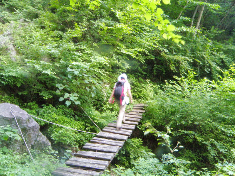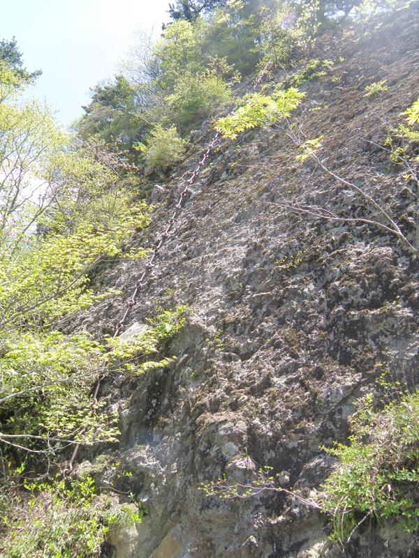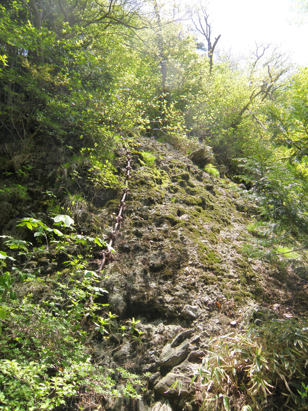 一ノ鎖を登り、上部は崩壊しているため、途中から右側に巻く。 巻き道から本道に合流したところは、二ノ鎖の上らしい。