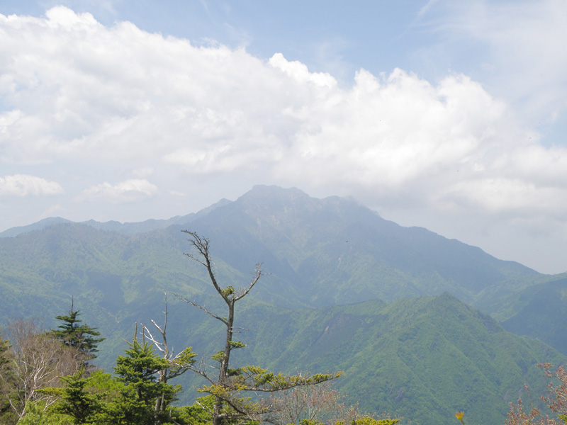 30分くらい歩いた辺りから、視界が開けてきて石鎚方面が見えるようになってきた。