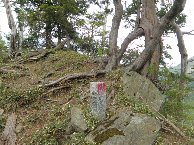 山頂の案内はなく、三角点があるだけだった。 展望は無し。
