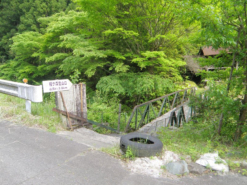 登山口に向けて、舗装されていない道路を歩く。 しかし直射日光が当たる箇所があって、かなり暑い…… 道路を歩くこと25分、ようやく瓶ヶ森登山口に到着。 さて、ここからが本番だ。 と、その前にスパッツを装着し、少し休憩。 登山口までもけっこう歩くんだね… 舗装されていない道路、所々車を止められそうな場所はあるのだが、道が悪いからな~ バイクだったら間違いなく入ってきていたけど。