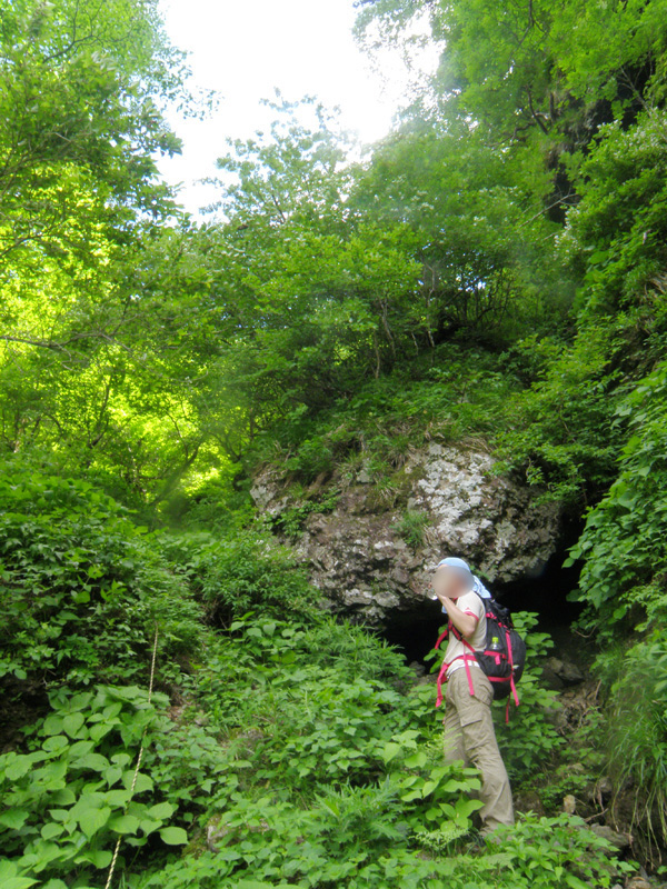 途中で、洞窟みたいな岩の隙間があったので入ってみたのだが、奥行きは2mほど、しかし真っ暗で全く見えない。 虫がすさまじい。 ヘッドランプ出すのも面倒だったので、ちょこっと入っただけだったが。
