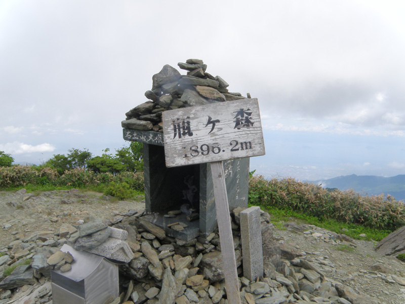 そしてスタートから5時間経った13時40分、ようやく瓶ヶ森山頂に到着。 東~南東方面はガスがすごすぎて景色が全く見えない。 北は新居浜、北西~西は今治~松山、南西には石鎚が見える。 ガスが出ていなかったら360度の展望だな。 素晴らしい。