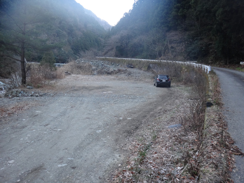 石鎚登山口の西之川を越えて、1kmほど走った、左手にある広い空地に駐車。 この先、道は未舗装路になるため、この車で走るのはきつい。 いつもここに車を止めて登山をしている。
