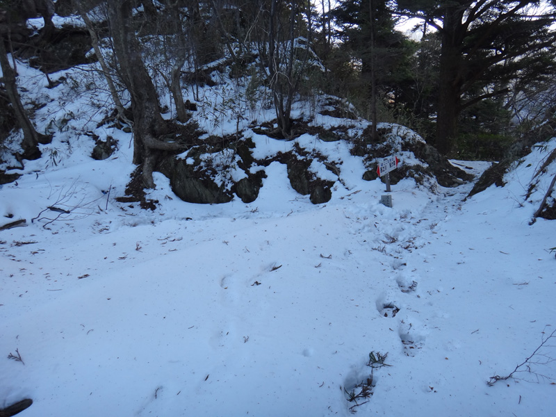 この登山道を往復したらしき足跡がついていた。 はっきりと残っているので、昨日か? 一昨日か?