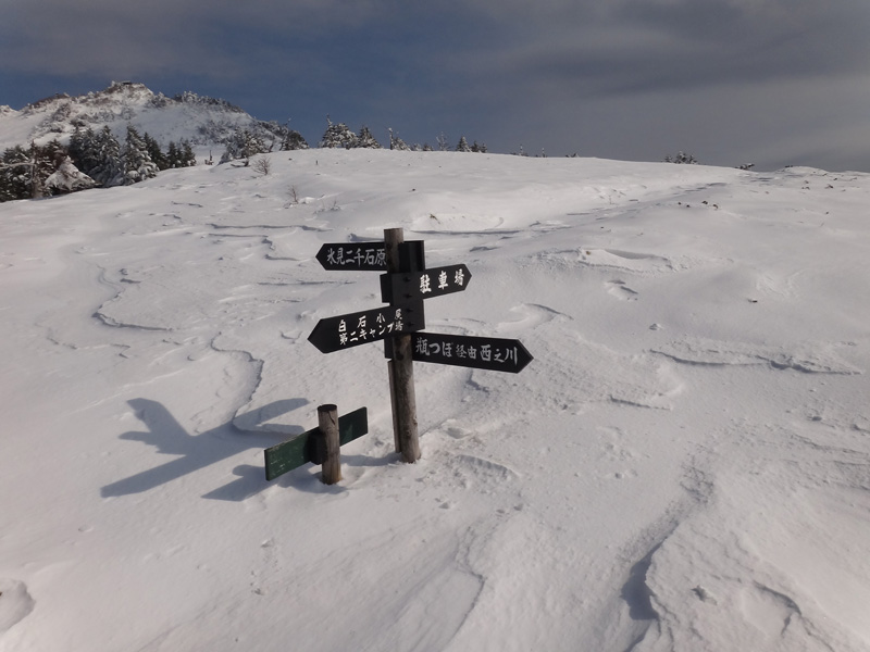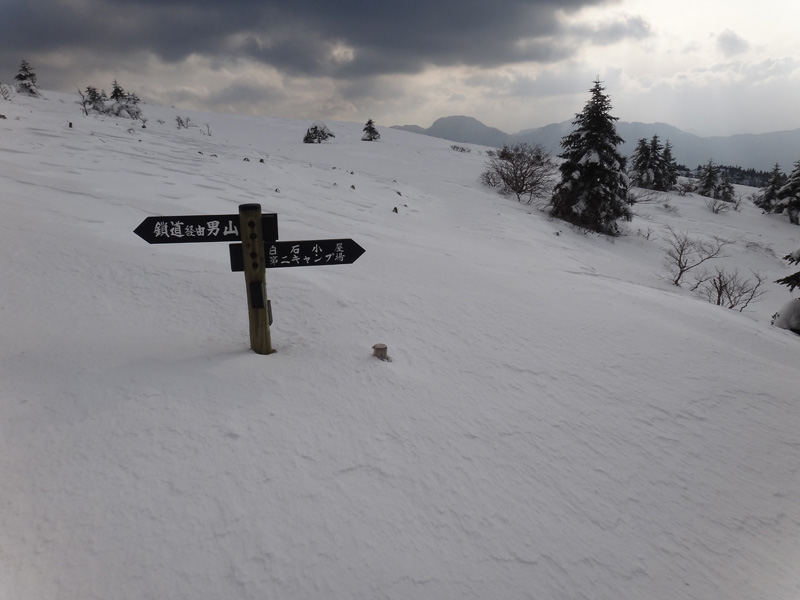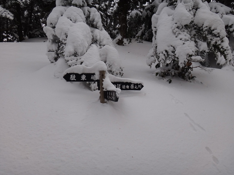 2010/12/26にも、冬季の瓶ヶ森に登っているけど、その時の積雪量とはわけが違う。 その時ですら、ここから先の道に難儀したのに、今回は倍以上の積雪だ。