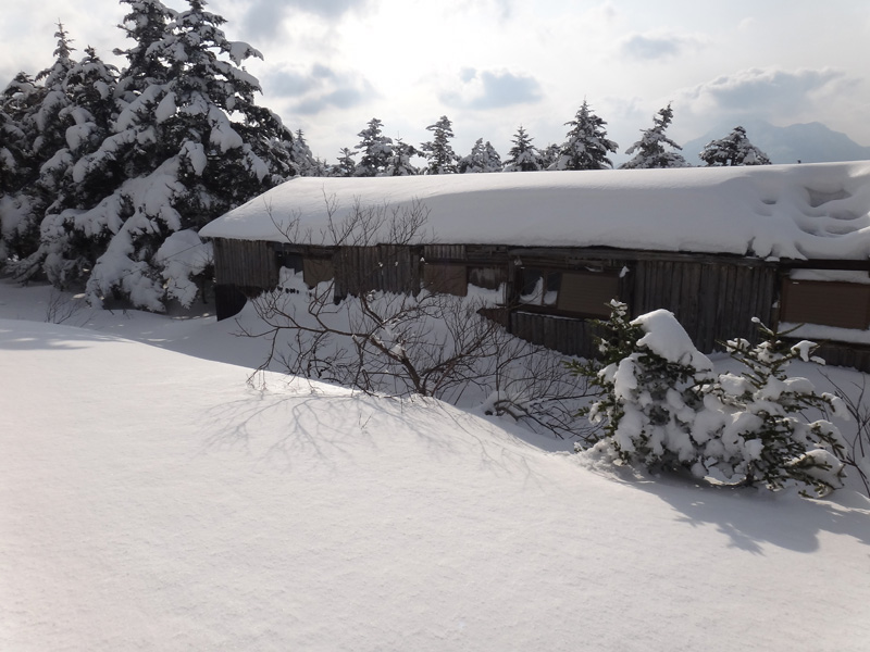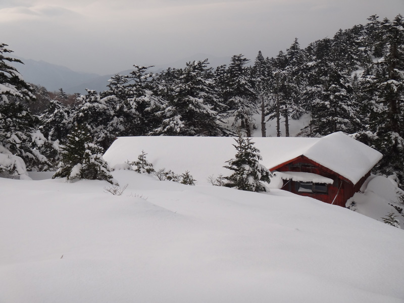 白石小屋までもだいぶ苦労した。 小屋は雪に覆われすぎていた。