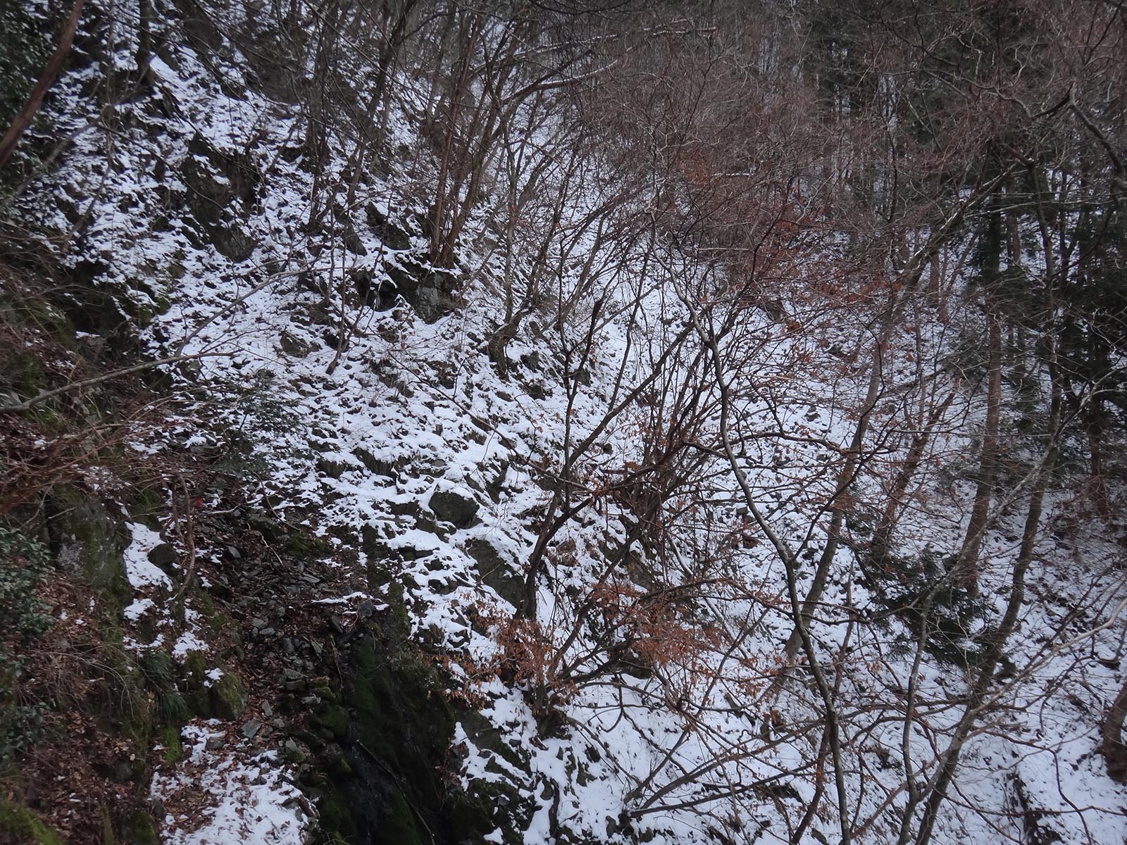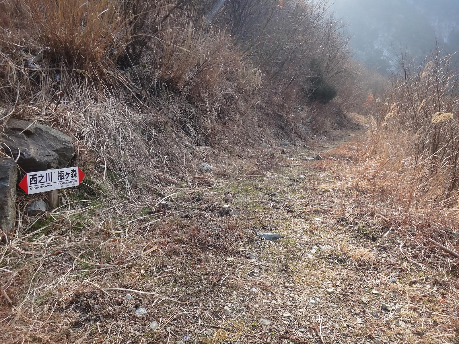 瓶壷まで戻り、そこから誰も歩いていない西之川方面に向かって歩いていく。 さて、すさまじい下りを降りるとするか。 降りはじめの道が一番悪い。 転ばないように慎重に降りなくては。