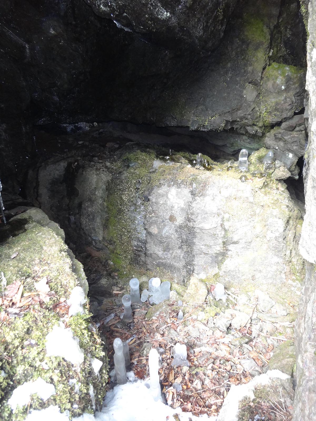 かなり苦労しながら登っていく。 この谷の反対側の登山道、たしか鉄の梯子が2か所くらいあったと思うのだけど、全てが雪に覆われていて、梯子の場所すらわからなかった。 息を荒げながら、ようやく、この谷を抜け出した。 ここまでさらに1時間かかった。 瓶壺はもう少し。 だが、ここから先も相当積もっている。 膝くらいのラッセルをしながら瓶壺に向けて歩いていく。 50mくらいしかないはずなのに、ものすごい遠くに感じた……
