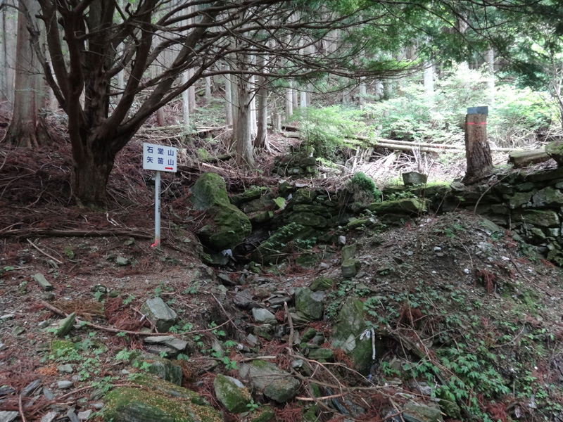 縦走路合流地点から石堂山までは1度歩いたことあるけど、その日雨だったし、どんな道か忘れてしまった…… こちらも道はけっこう緩やかで、すぐに石堂山まで到着。