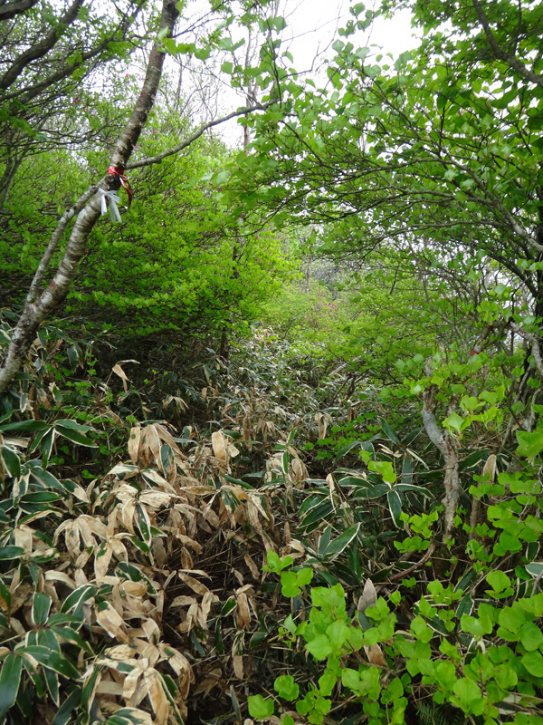 悪路と思われたサガリハゲ山への道。 ただでさえ歩く人が少ない道だから、季節によって雑草や笹の長さがだいぶ変わるよう。 この時期はまだ成長しきっておらず歩きにくくは無かった。 歩いて感じたが、あれはやはり悪路に入るのだろう。