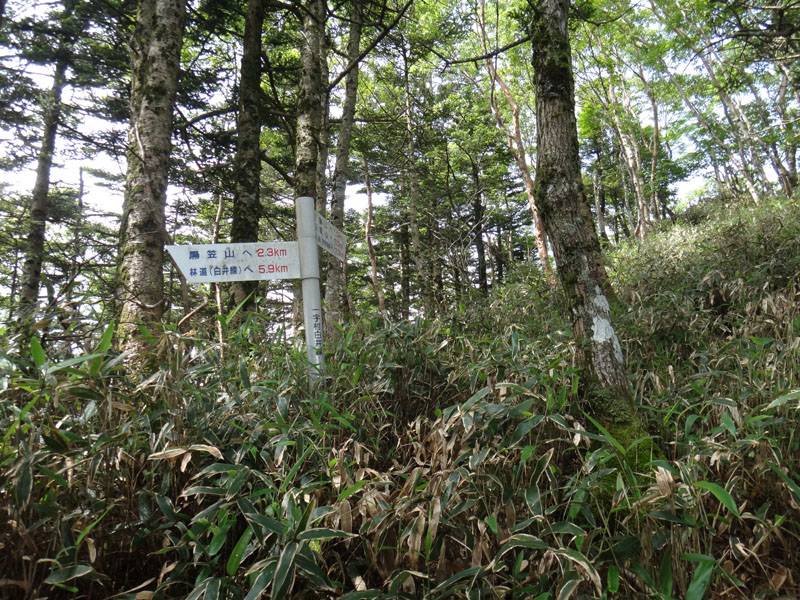 とりあえず水場分岐まで行ったが、笹が多いため断念。 もう少し先に進んでから休もうか。