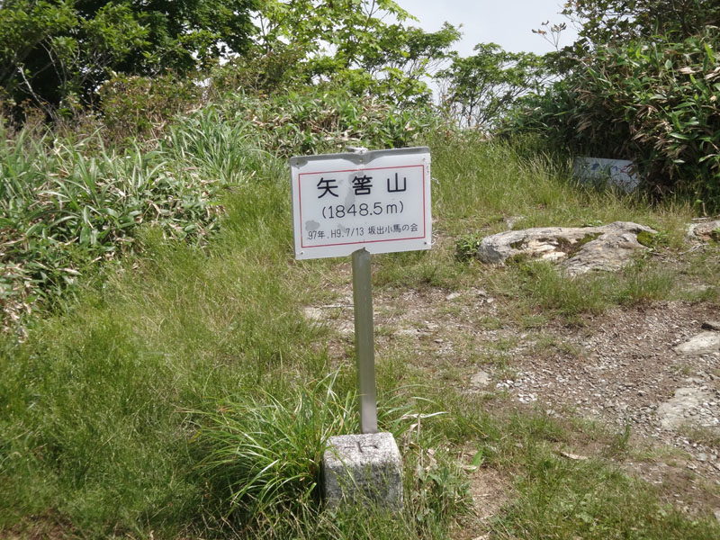 矢筈山への最後の登りは、やはりきつかった。 けっこう傾斜のある笹の道。 足元はめちゃめちゃ滑る。 笹を掴みながら山頂に到着。