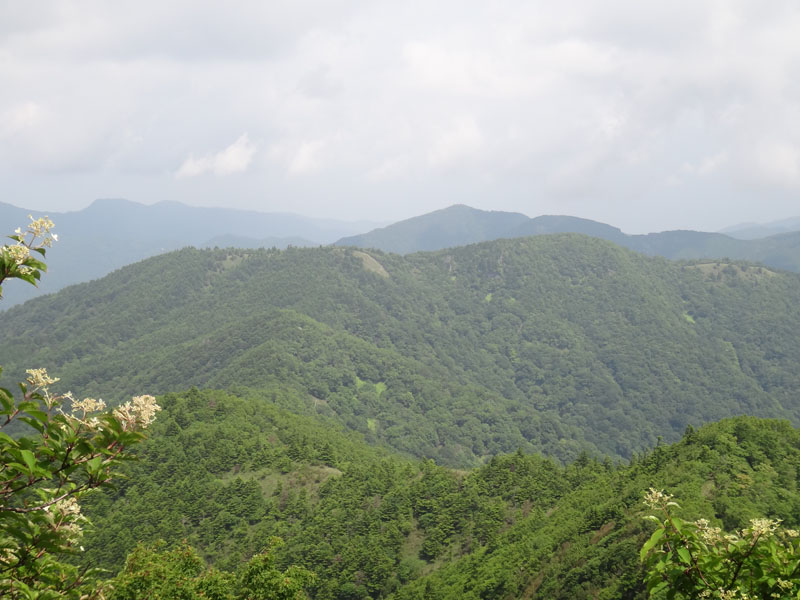 サガリハゲ山からは落合峠方面が見えるが、三嶺とか剣山の方は雲がかかり見ることができなかった。 山頂で少し休憩し、矢筈山に戻ることに。