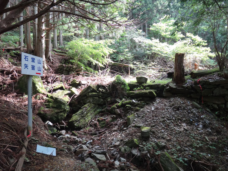 縦走路合流地点から石堂山までは1度歩いたことあるけど、その日雨だったし、どんな道か忘れてしまった…… こちらも道はけっこう緩やかで、すぐに石堂山まで到着。