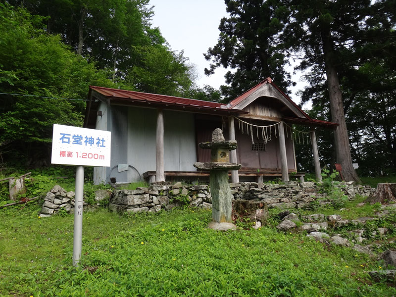 40分ほど歩き、石堂神社まで到着。 来たことないけど、ここまで車で来ることができるみたい。 ただ「林道」と書いてあるので、だいぶ道が悪いかもしれない。