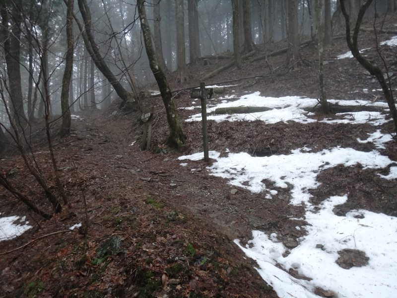 山頂越えてすぐのところで、石堂神社からの登山道に合流。 神社からの登山道、白滝山までこんなすぐだったのか。